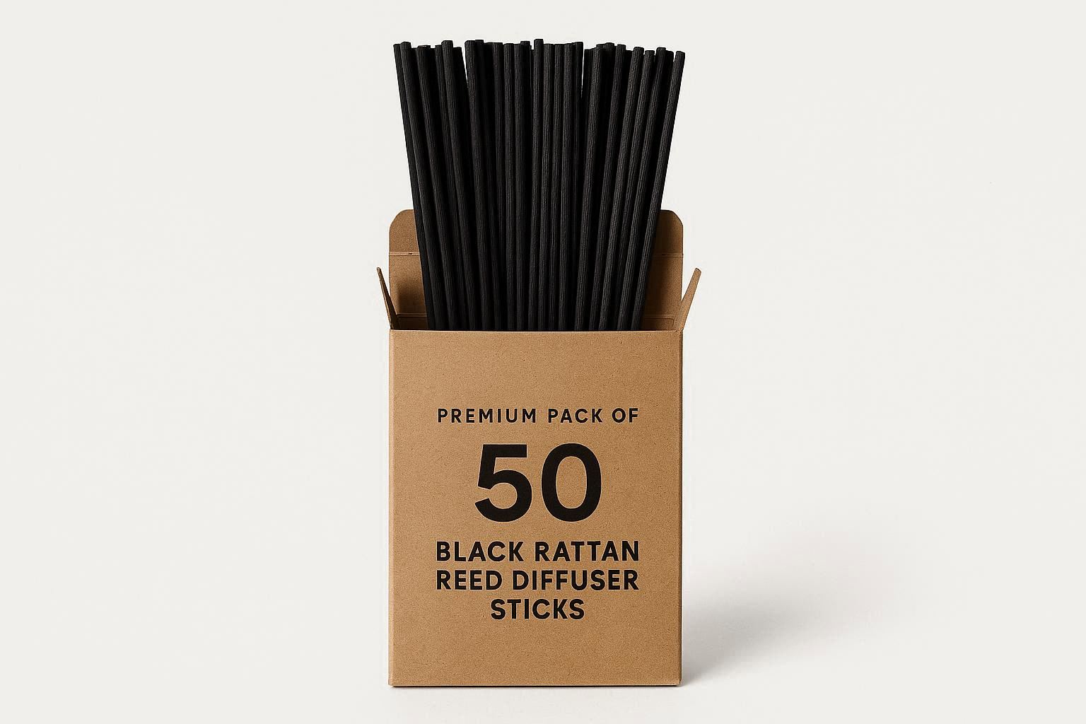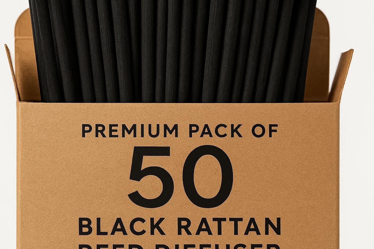 This product is specifically designed as a refill or upgrade for existing reed diffusers. It contains 50 premium-quality black rattan reed sticks, which are not only highly effective at wicking and diffusing oil but also add a striking visual contrast to clear or light-colored fragrance oils and bottles. The sticks are approximately 10 inches long and can be trimmed to fit any diffuser vessel.