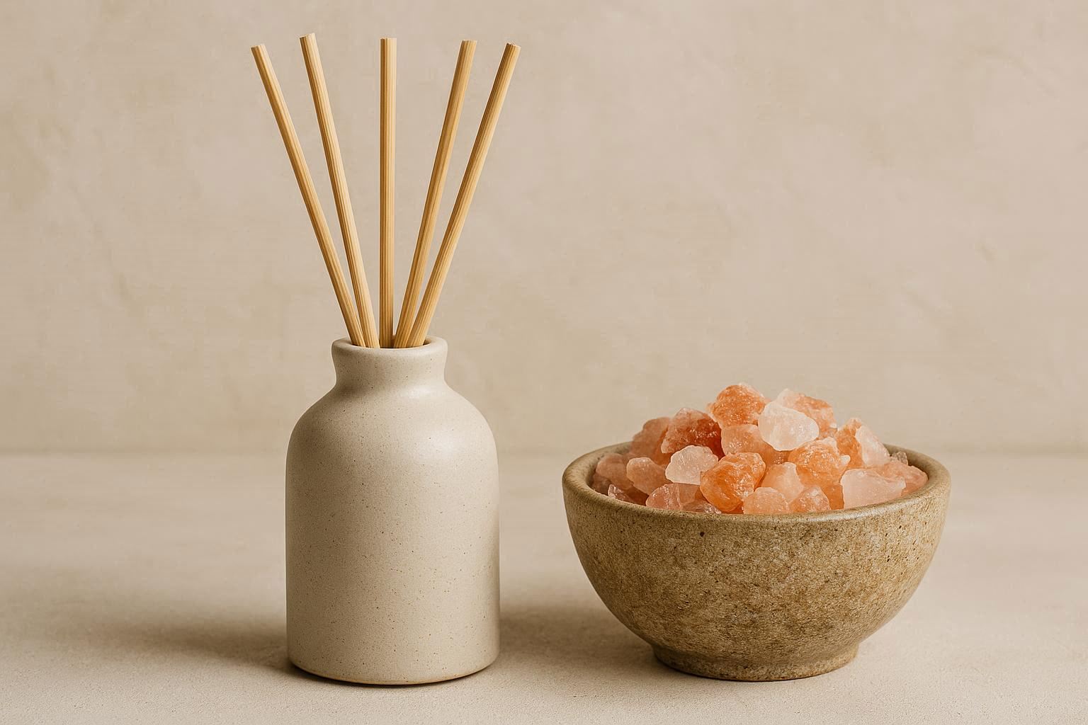 This unique diffuser combines natural elements for holistic ambiance. It features a handcrafted, porous stoneware vessel filled with small chunks of genuine Himalayan pink salt. The set includes a 100ml bottle of essential oil-based fragrance blend and natural reed sticks. To use, pour the oil over the salt crystals, which then absorb and slowly release the fragrance while the reeds provide additional diffusion.